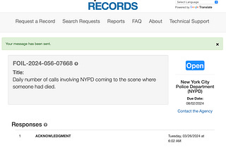 UPDATE: NYPD has failed to respond to a FOIL request for basic DOA call data