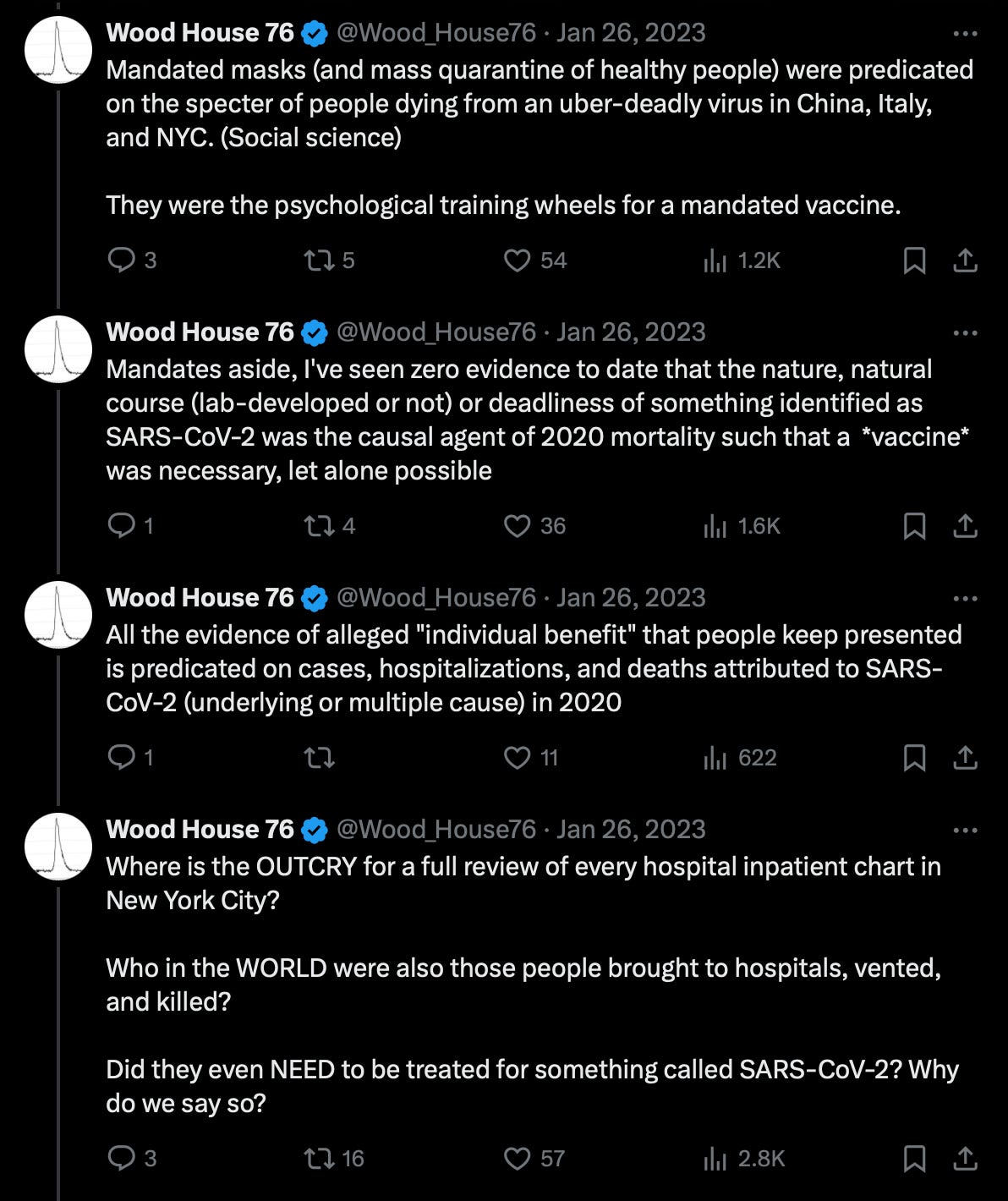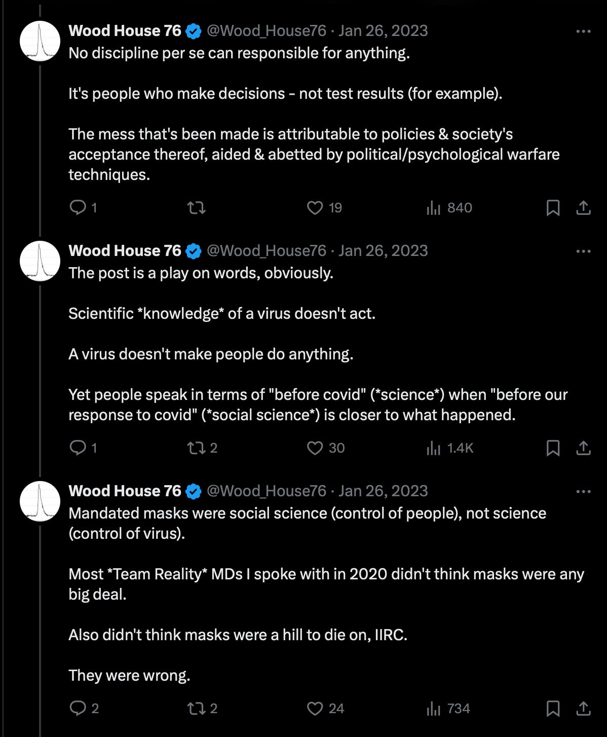 [Note: The 'blackout’ in Bhattacharya’s second reply is him using my previous handle on the account, which a troll took over when I changed it to @Wood_House76 later on in 2023.]