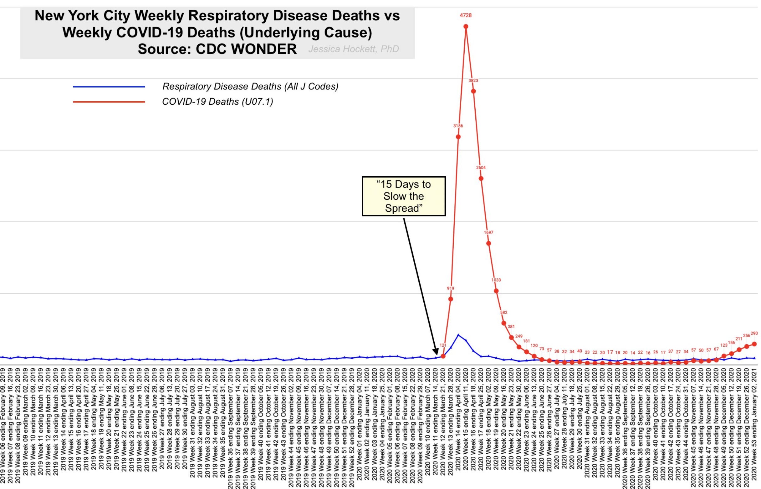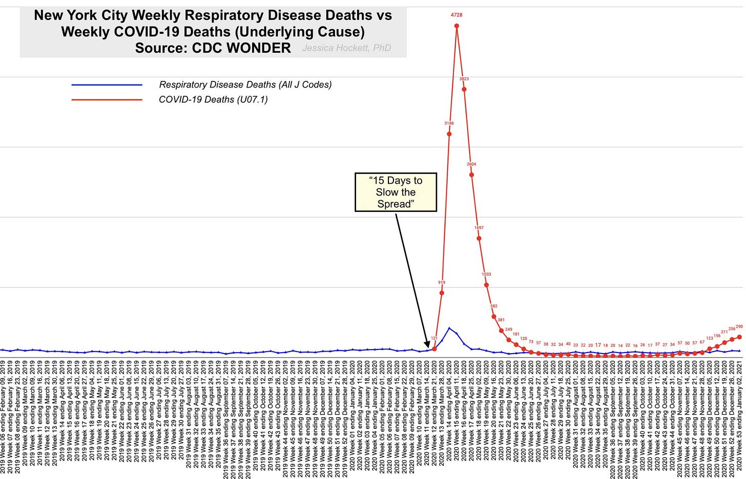 The thing lurked silently, with no impact on excess death, until exploding in Iran, select provinces in Northern Italy, and parts of Spain, just before unleashing its fury on the largest and densest city in America, right after “15 Days to Slow the Spread” was declared.