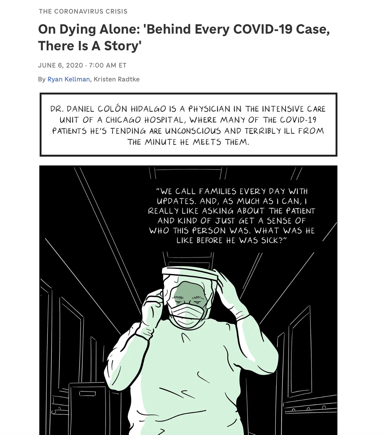 Mini graphic novel depicting Dr. Daniel Colon Hidalgo in the ICU of a Chicago hospital. Themes and sequence are similar to the Spencer video.