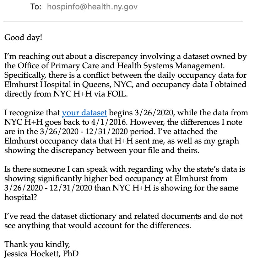 New York is Hiding Crucial Hospital Data From Spring 2020 and Ignoring Questions about Discrepancies for an "Epicenter" Hospital