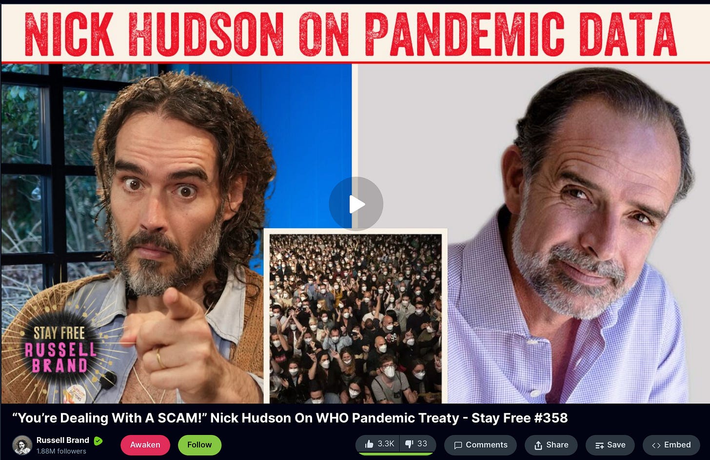 The entire episode, “You’re Dealing With a SCAM!” Nick Hudson on WHO Pandemic Treaty” is available on Rumble.