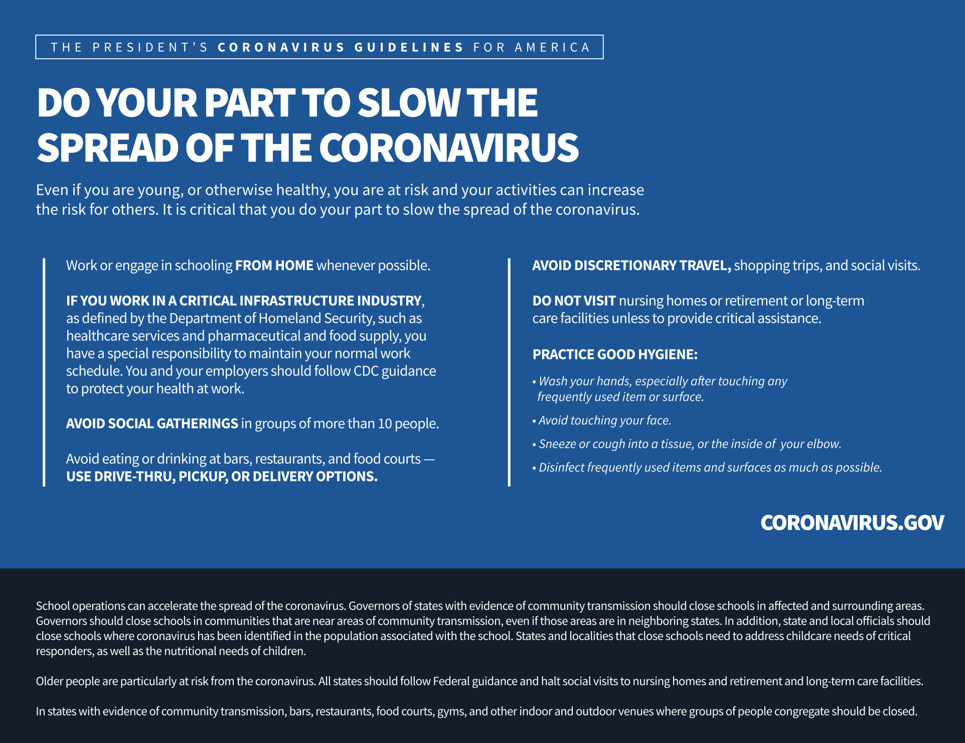 16 March 2020: U.S. declares 15 Days to Slow the Spread.
