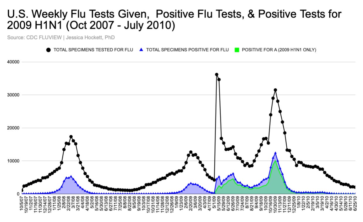 "WHO/CDC Swine Flu Venture was successful in what it demonstrated about testing. Specifically, that testing could be leveraged to a) get the public’s attention, b) justify the pandemic preparedness industry, c) expand global disease surveillance programs, and d) pin more P&I deaths on influenza. " Describes my several years of experience as a sentinel provider, then as an objector to the H1N1 HCW mandate in NYC - threatened with termination in 2009 and ultimately terminated in 2016. Finally, as an active primary and urgent care physician in NYC during the panic-demic of 2020, i will attest that everything you have observed in your research for this article reflects very accurately what I experienced in my day to day practice.