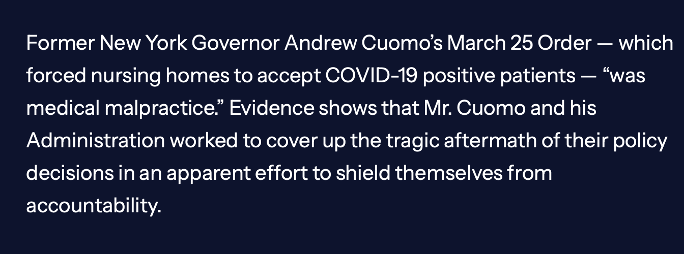 I’ve investigated the New York City mass casualty event of spring 2020 in depth and dedicated many words to the “nursing home policy” excuse. (See here and here, for example.)