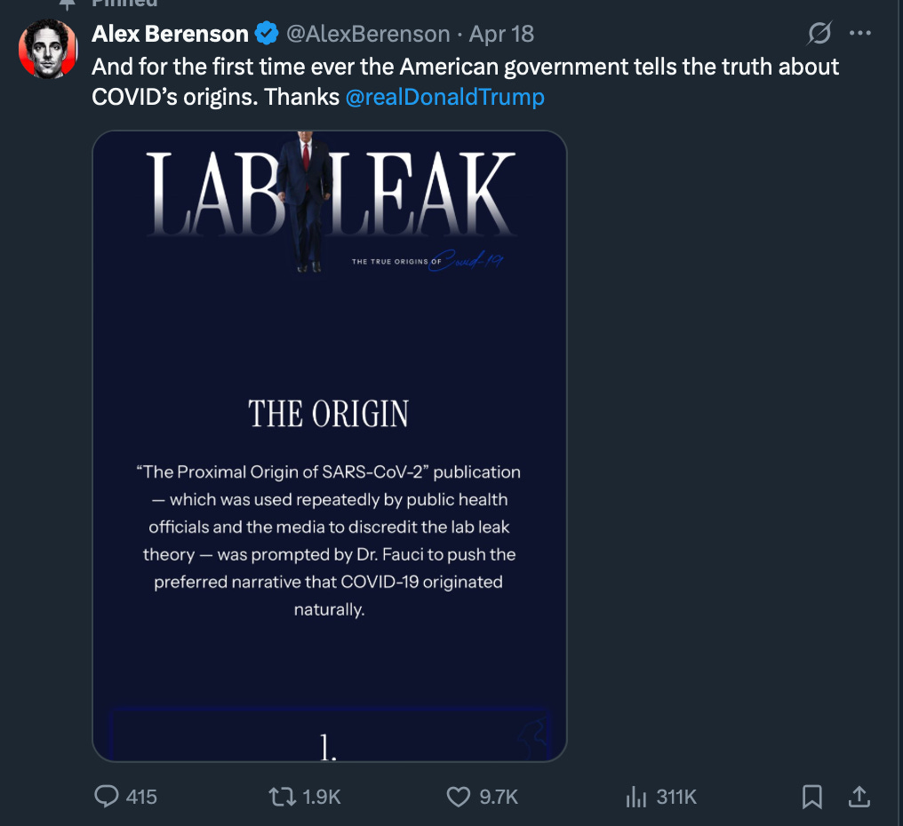 The American government is not telling the truth, despite the adversarial Alex Berenson and others perceiving that they are.