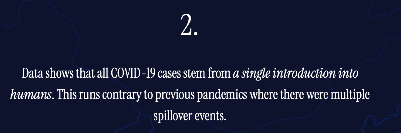 Pandemics aren’t a thing, and no alleged pandemic involving a respiratory illness has been definitively traced to anything, so the “multiple spillover events” claim is baseless.