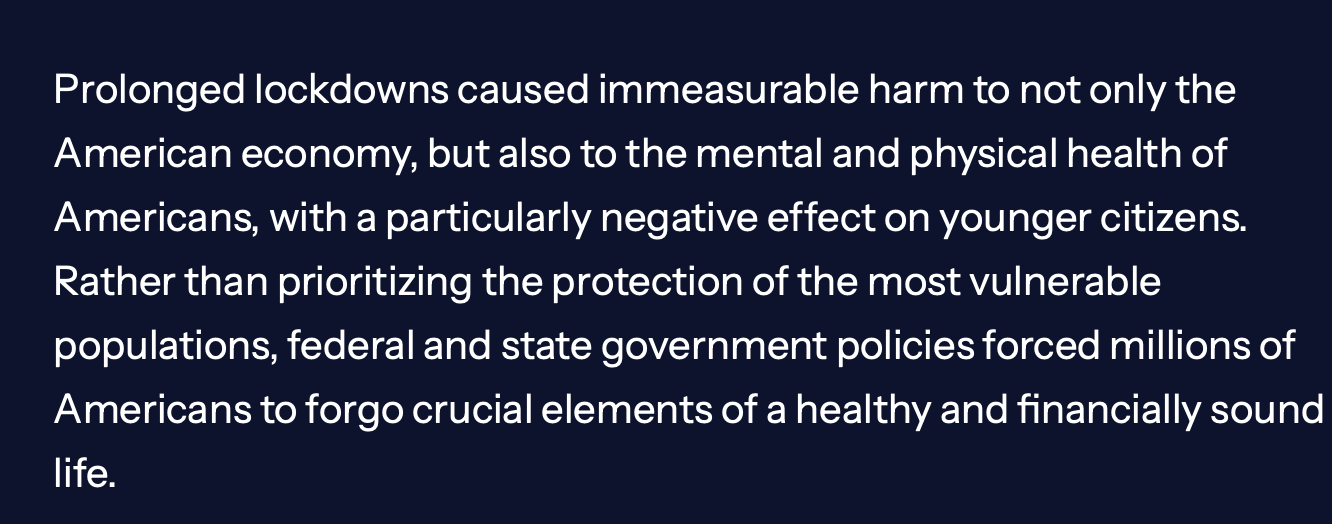 "...harmful vaccine mandates...trampled on individual liberty, informed consent, and the doctor-patient relationship." See page 329.