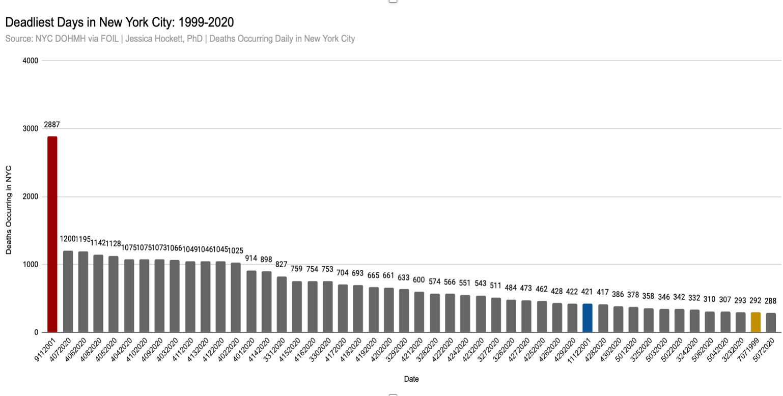 UPDATE 9/19/24: In the comments below, Denis Rancourt stated, “NYC handles a lot of deaths, and it has death-surge capacity for heat waves, cold snaps, major accidents, etc.”