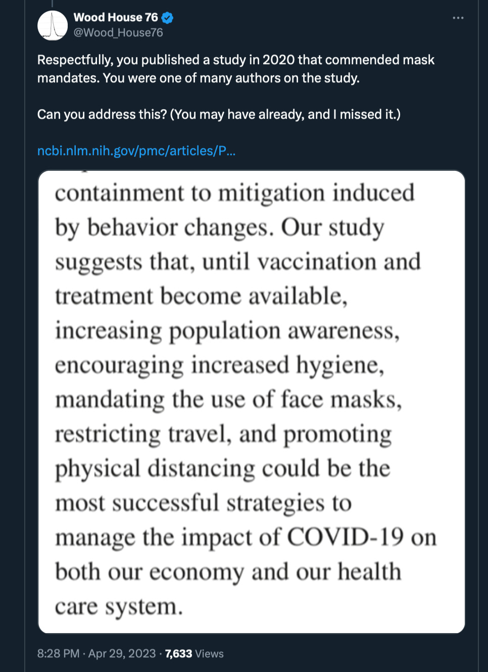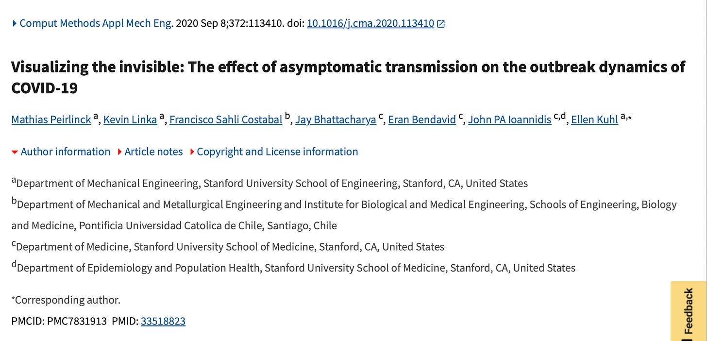 In April 2023, I respectfully questioned Jay about a statement he and his colleagues made in a September 2020 modeling study on asymptomatic transmission, which endorsed mask mandates. I had opposed mask mandates from the moment they were announced in my suburb. Jay had a general awareness of my well-documented virtual and real-life battles against those mandates.