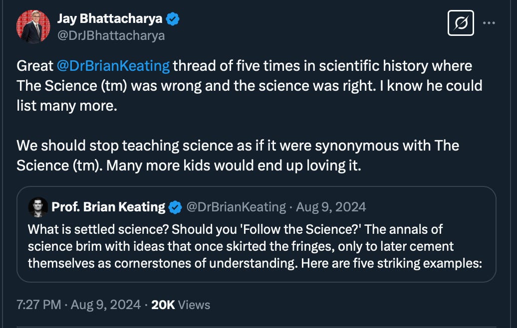 None of this changes the fact that Jay Bhattacharya is a kind-hearted man and a significant improvement over his predecessors. While I opposed his nomination as NIH Director, I have not actively crusaded against it.