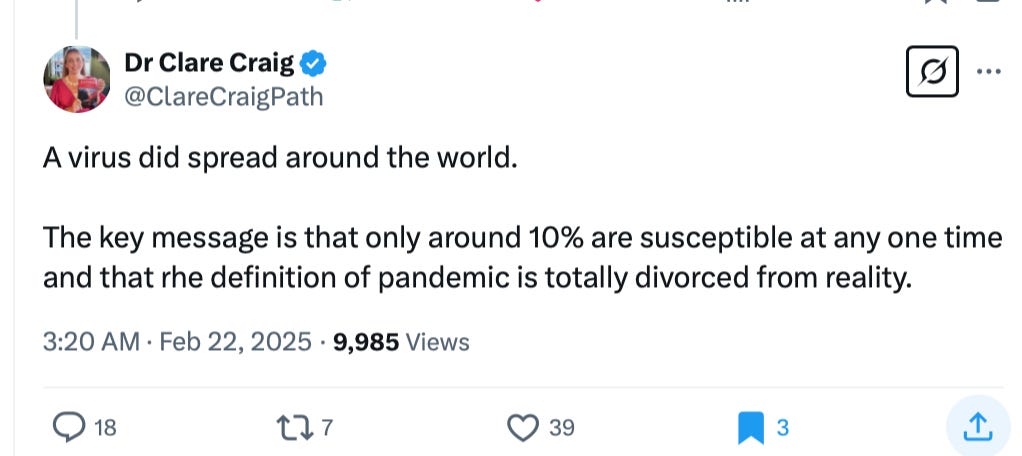 The key message is that only around 10% are susceptible at any one time and that the definition of pandemic is totally divorced from reality.