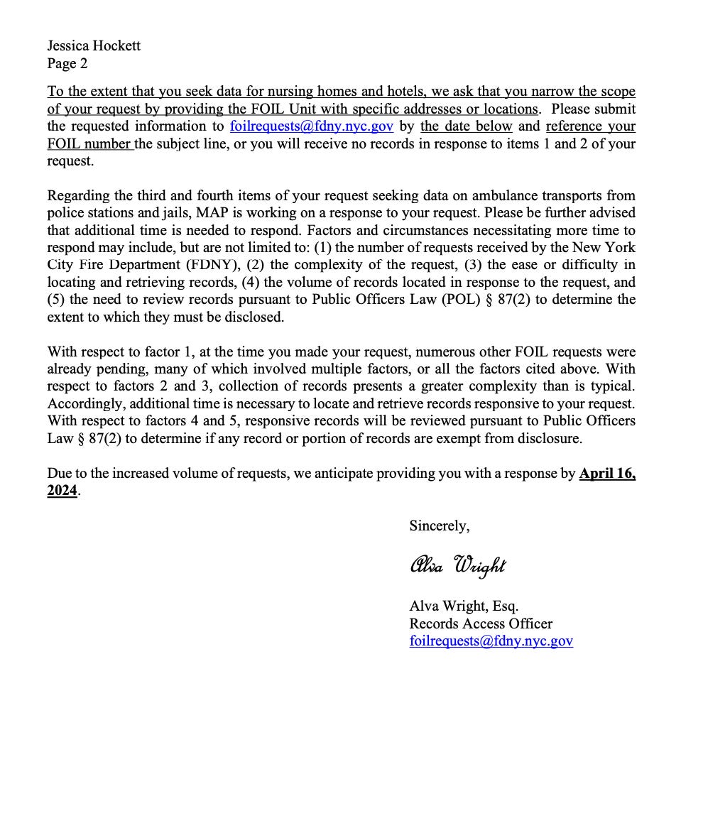 Ten days after speaking to a Fire Department of New York City public records officer about an 11-month-old data request, I finally received (what I consider) an acceptable interim response.