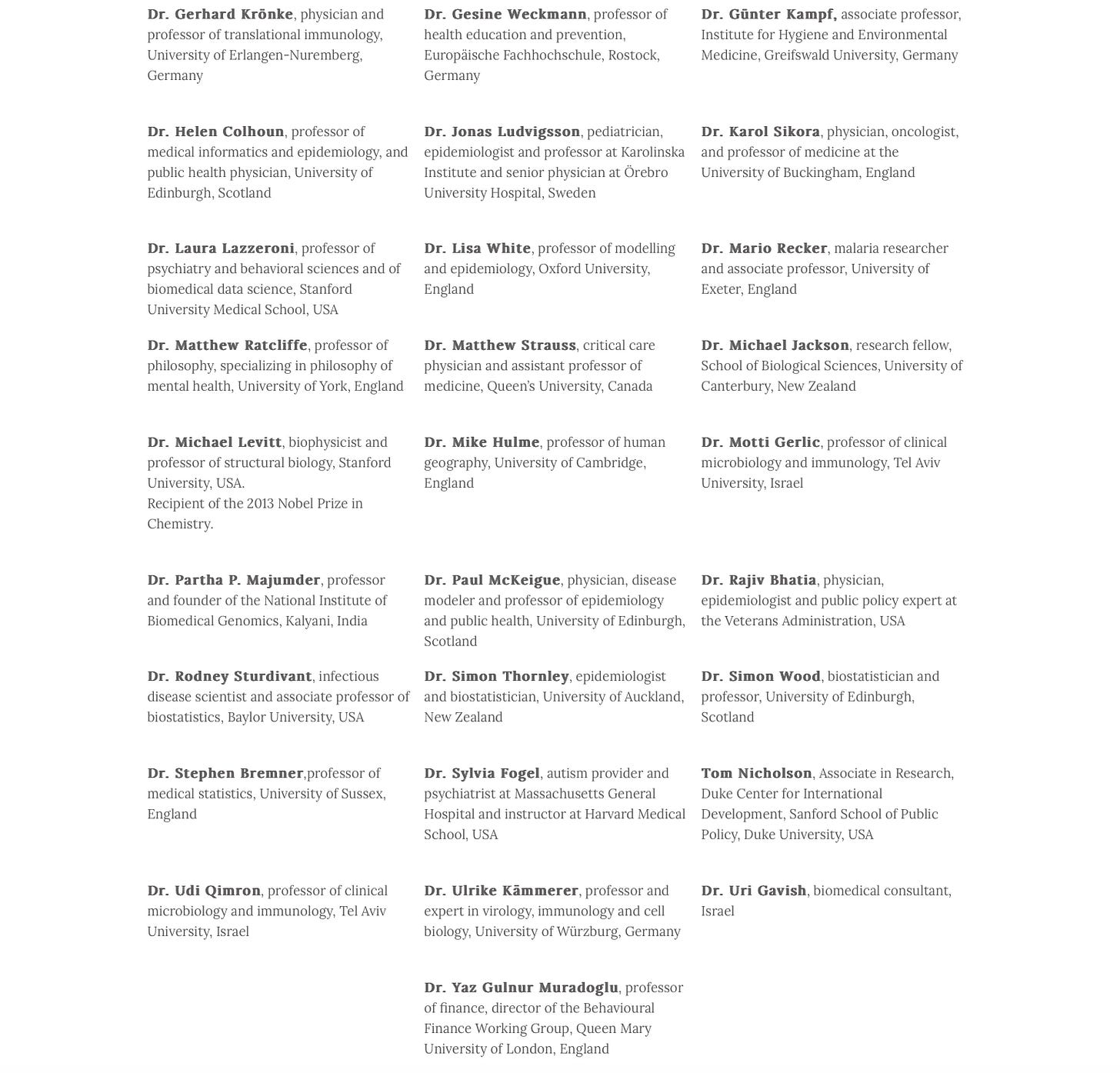 Besides the three authors, 43 scientists from various countries are featured prominently on the Signature page.