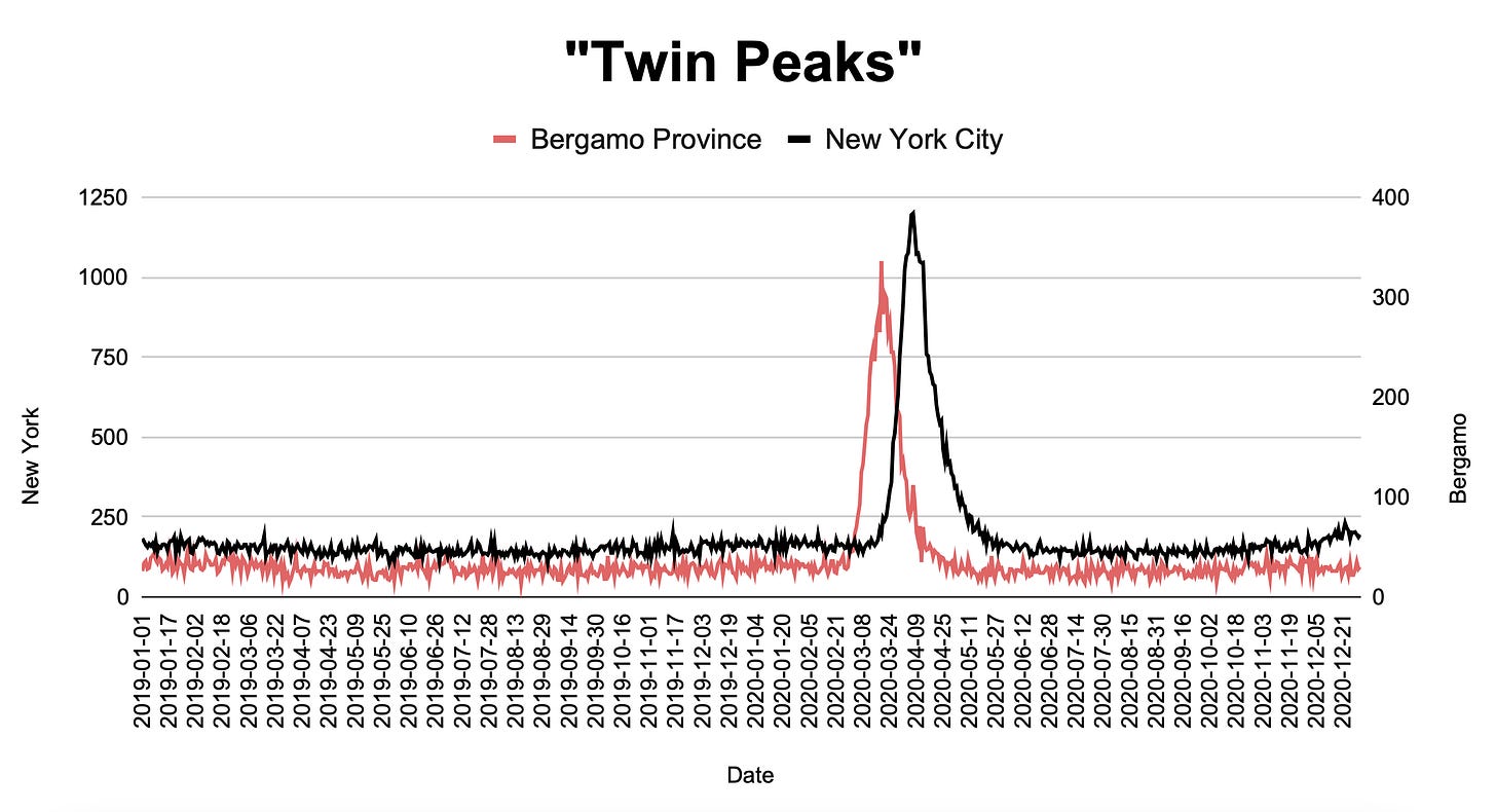 and I have been drawn to the ‘outlier’ death spikes in New York City and Bergamo, Italy. Either these mass casualty events did happen as presented or they did not. There is no in-between. And if they didn’t, it’s a big freaking deal and creates even more plot holes in an already scientifically-specious tale.Maybe - just maybe - we don’t need more ‘science’ at this point to begin to prove whether there was a novel spreading coronavirus that dropped like a bomb on some places but not others?3